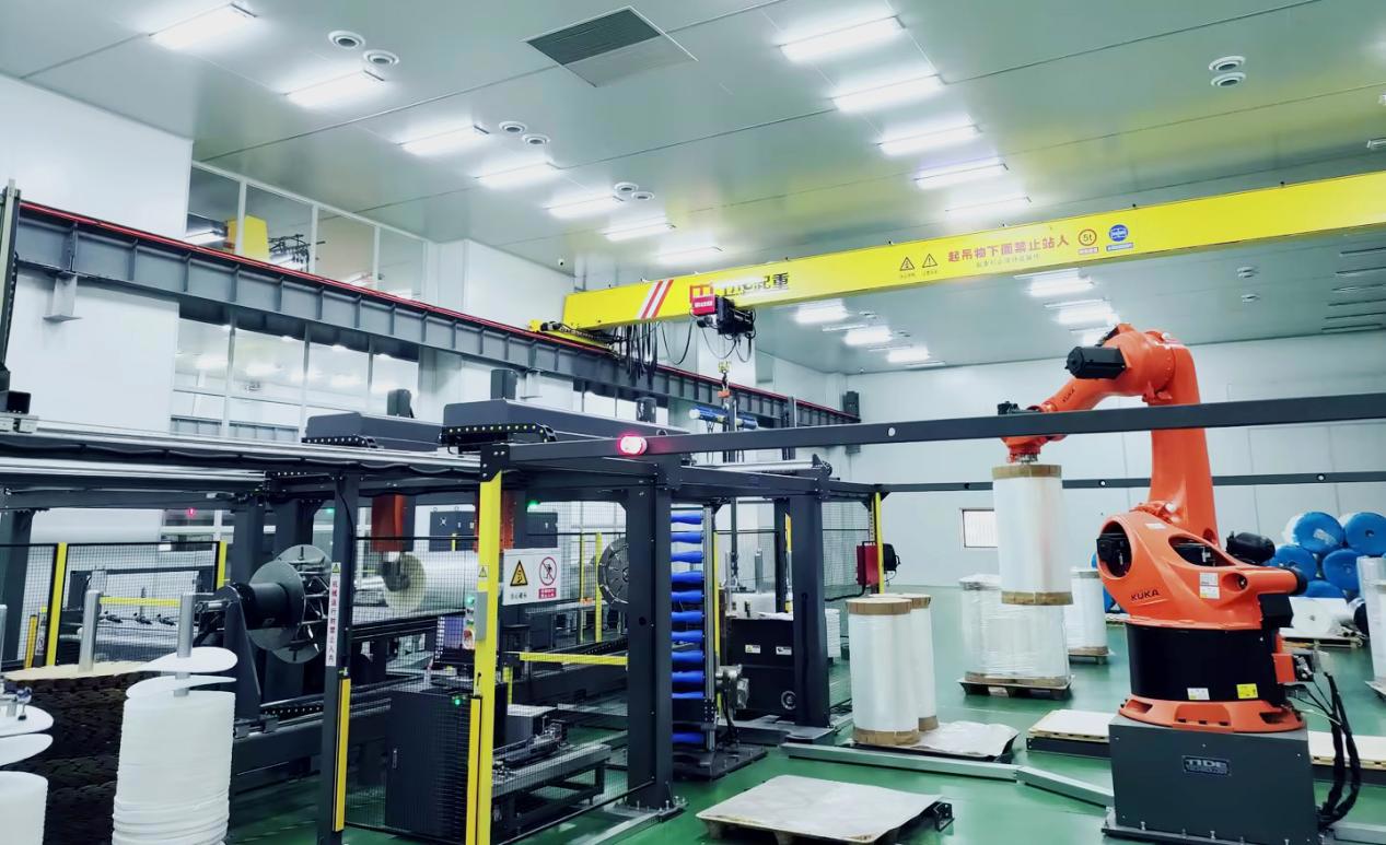 公司新质料产品属于包装工业链原质料,,,,,,,,客户对产品质量要求高,,,,,,,,且因单卷重量大导致人工操作时可能爆发折痕、卷边、粉尘等问题,,,,,,,,保存一定的质量及清静危害。。。。。。为更好知足日益增添的产能和市场需求,,,,,,,,恒行5官网公司经多地考察、科学研判,,,,,,,,对生产三部新质料产品包装工段举行智能化升级刷新。。。。。。